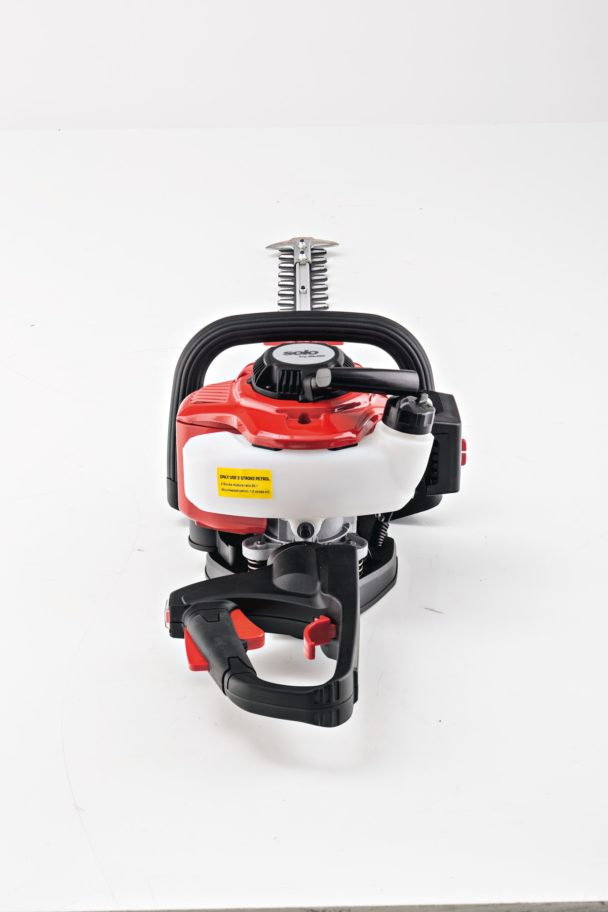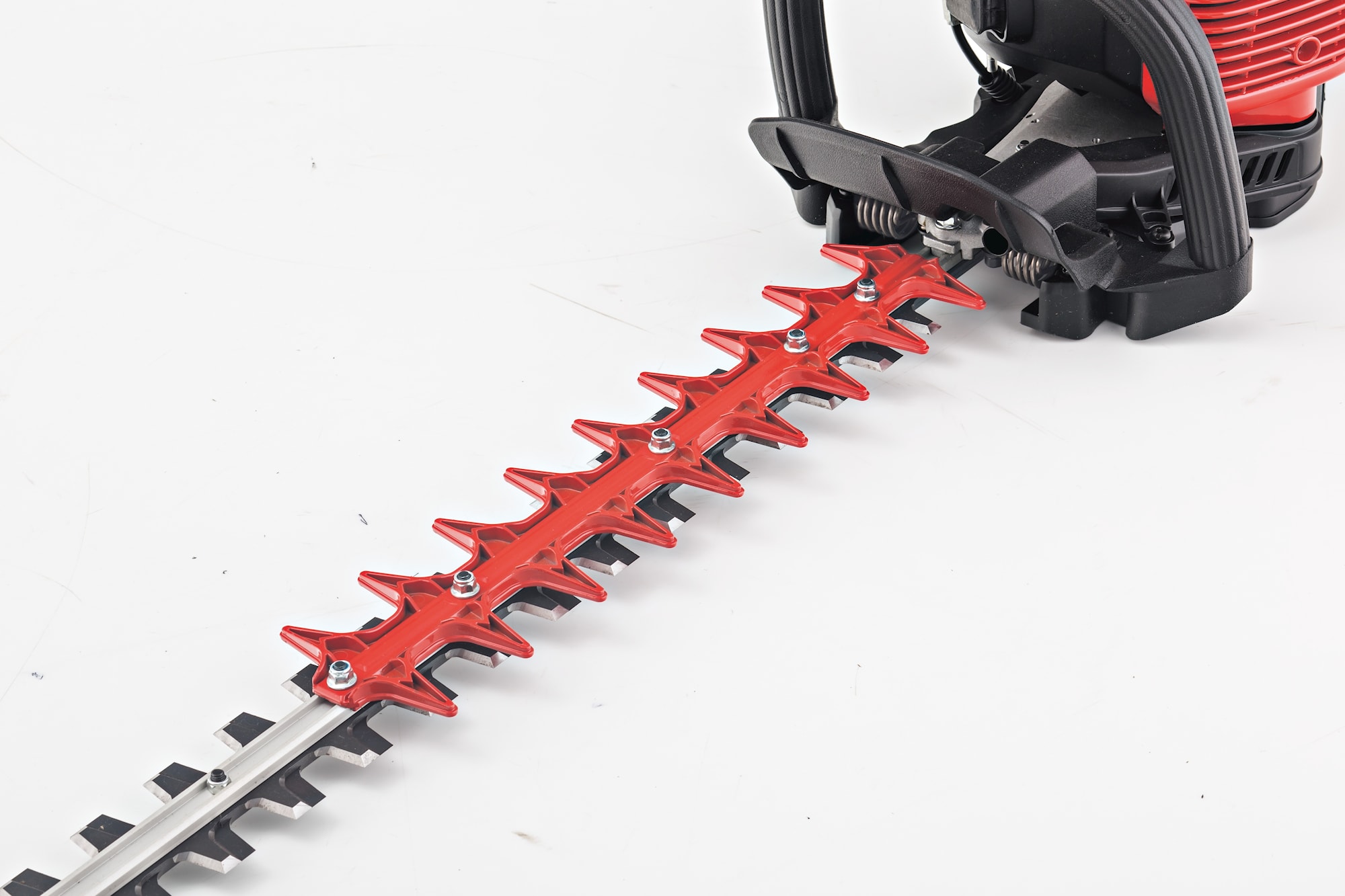 Miten saada hyvin hoidetut pensasaidat ja pensaat paikoissa, joissa ei ole pistorasiaa Tämä ei ole ongelma bensiinikäyttöiselle pensasleikkurille, jossa on 70 cm pitkät erikoiskarkaistut terät ja suuri 440 ml:n säiliö, joiden ansiosta työ käy kuin leikiten. Loukkaantumisriskin vähentämiseksi laite on varustettu leikkuusuojalla. Liukumaton kahva, jota voidaan säätää kolmessa asennossa, tarjoaa optimaalisen pidon kaikissa työasennoissa.