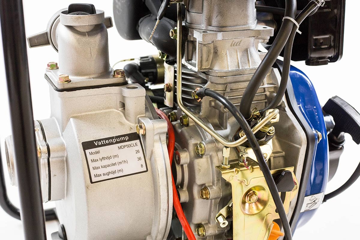 DUAB-POWER MDP50CLE on dieselkäyttöinen moottoripumppu, joka on varustettu sähkökäynnistyksellä ja suurella säiliöllä. Kone toimitetaan käynnistysakulla ja letkuliitännöillä. Alumiininen pumppupesä sisäänrakennetulla takaiskuventtiilillä. Luotettava kone kastelu-, salaojitustöihin jne.